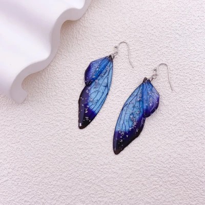 Handmade Clear Gradient Resin Simulation Wings Butterfly Rhinestones Flake Long Drop Earrings