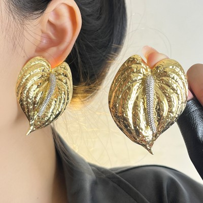 Kshmir Exaggerated Metal Large Leaves Earrings for Women European American Personality Unique Party Heavy Jewelry Accessories