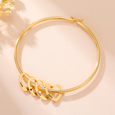 Cazador Customized 1-5 Names Heart Charms Bangle for Women Stainless Steel Gold Color Jewelry Personalized Bracelet Gift 2025