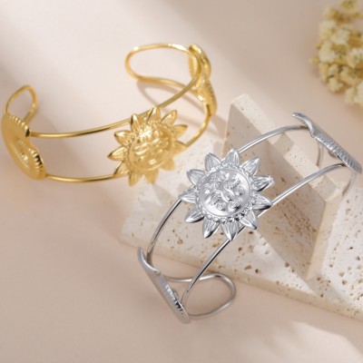 Cazador Stainless Steel Sun Face Conch Cuff Bracelets for Women Gold Color Waterproof Open Bangle Bracelet Jewelry 2025 New in