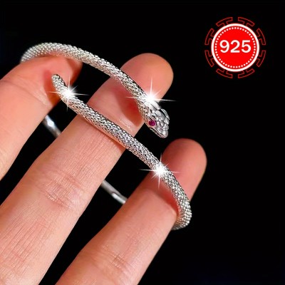 925 Silver Hypoallergenic Stylish Opening Bracelet,Women's Fashion Spirit Snake Bracelet Hip Hop High-End Texture Bracelet,