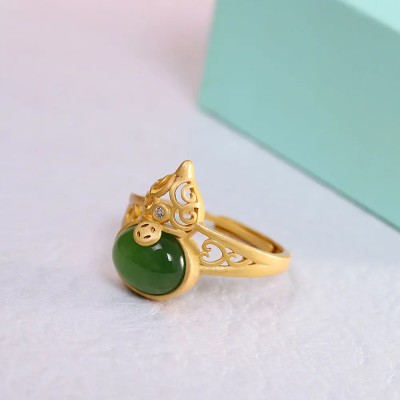 Jade Gourd Rings for Women Stone Amulets Jadeite Green Designer 925 Silver Real Jewelry Vintage Natural Amulet Charm Chinese