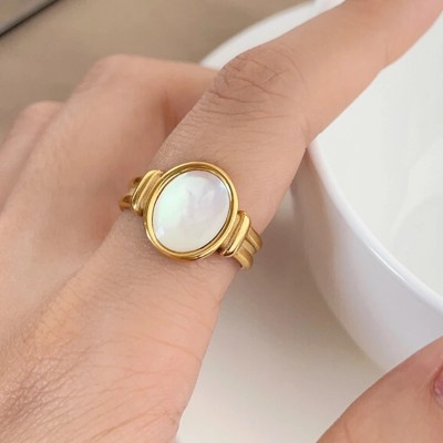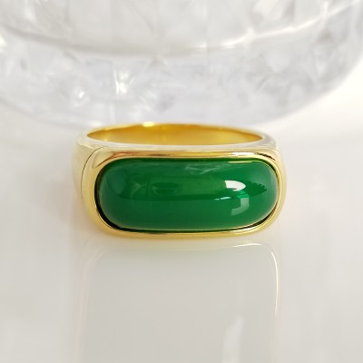Gold Color Natural Jade Stone Inlay Rings For Woman Fine Jewelry Wedding Party Birthday Stainless Steel Anillo Gift Wholesalers