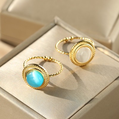 Gold Plated Moonstone Cats Eyes Ring For Women Fashion Luxury Geometric Design Trendy Jewelry