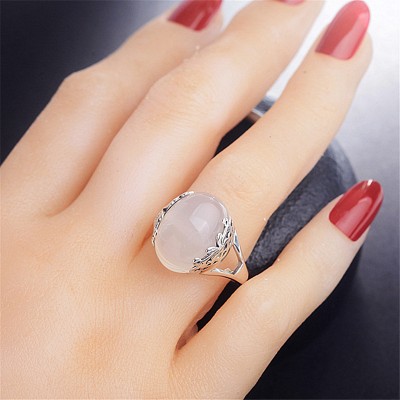 Thai Silver Adjustable spherical Big Gem Rings for Couples Garnet Red Yellow White Jade Jasper Chalcedony Gem Silver Jewelry
