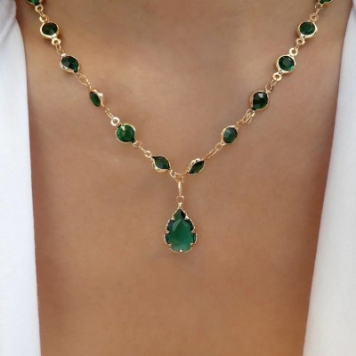 Pearl Colored Stone Necklace Pendant Chain Women Girls Gifts Simple Fashion Neck Jewelry Hot Sale Party Gift 2024 New Style