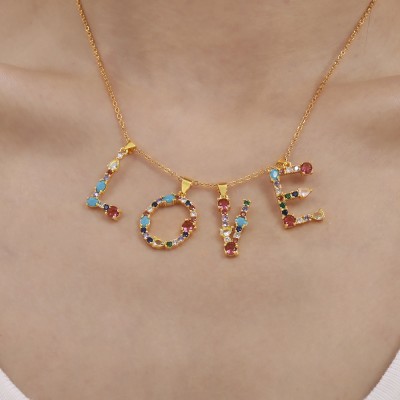 Luxury Colorful Zircon Capital Letters A-Z Pendant Necklace For Women Gold Color Copper Link Chain Choker Women Wedding Jewelry