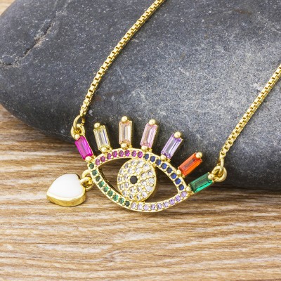 AIBEF New Design Colorful Evil Eye Choker Necklace Gold Color Copper Zircon Charm Turkey Lucky Pendant Jewelry Women Female Gift