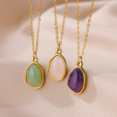 Natural Healing Crystal Necklace Stainless steel Necklace Colorful Crystal Irregular Healing Crystal Pendant Necklaces for Women