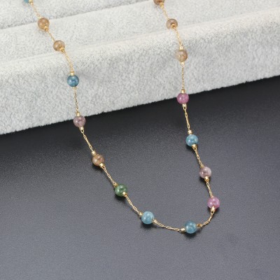 Colorful Stone Beaded Necklace Summer Personalized Fashion Stackable Women's Clavicle Necklace Holiday Banquet Jewelry Gift
