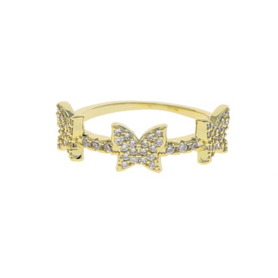 Gold Color Clear Cubic Zirconia Paved Butterfly Ring