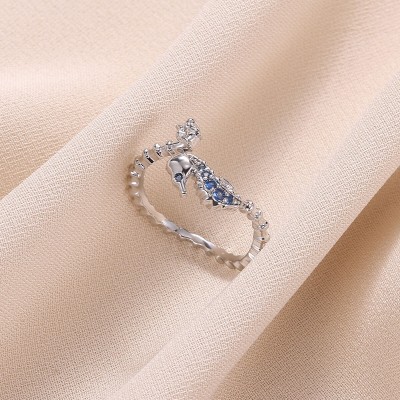Blue Crystal Seahorse Rings For Women Gold Color Stainless Steel Geometric Ring