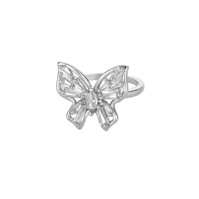 Zircon Butterfly Open Rings for Women Girls Stainless Steel Gold Color Finger Ring