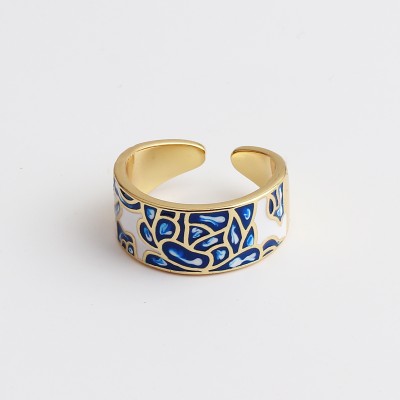 New Design Butterfly Flower Butterfly Enamel Adjustable Wide Band Rings For Women Vintage Open Ring Colorful Jewelry