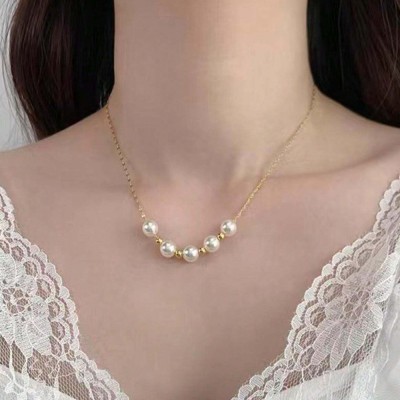 Imitation White Pearl Beaded Chain Necklace Elegant Jewelry for Women