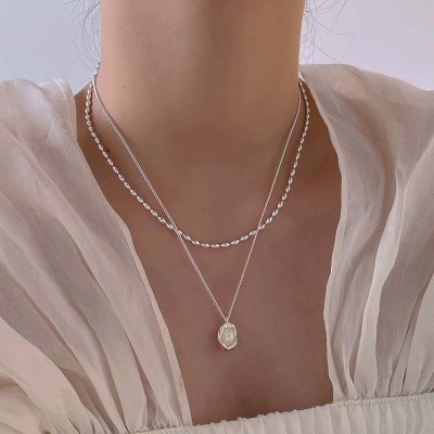 Silver Freshwater Natural Pearl Necklace for Women Pendant Fashion Clavicle Chain
