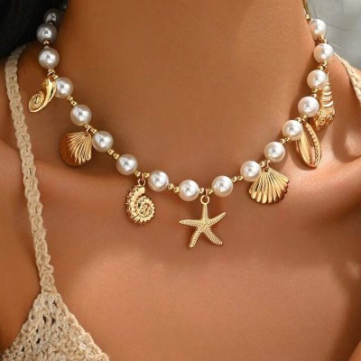 Bohemia Conch Starfish Imitation Pearl Necklace for Women Luxury Exquisite Beaded Shell Pendant Necklace Beach Holiday Jewelry