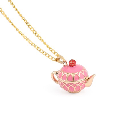 High-end Pink Pattern Teapot Pendant Necklace