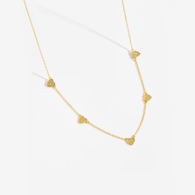 Sterling Silver Zircon CZ Heart Chain Pendant Necklace