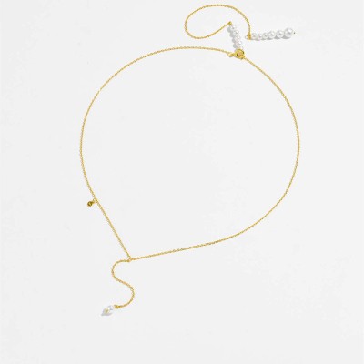 Sterling Silver Pearl Line Handmade Choker Long Chain Necklace