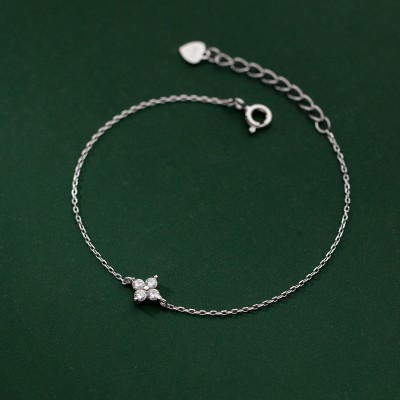 Sterling Silver Adjustable Chain Bracelets for Women Four Leaf Clover Pattern Jewelry