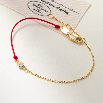 Silver Shiny Round Zircon Red Hand Braided Rope Charms Chain Bracelet