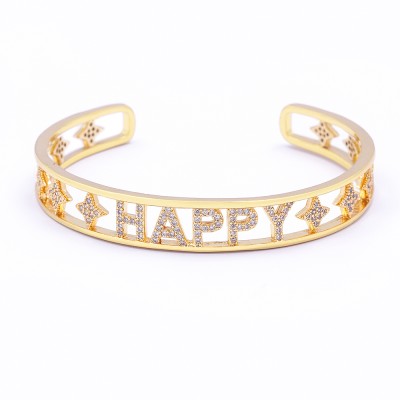 Gold Color Hollow HAPPY Letter Opening Cuff Bangle Bracelet