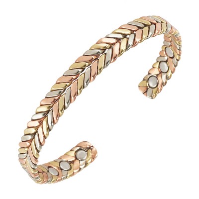 Fashion Pure Copper Bracelets Tricolor weaving Cuff Magnetic Bangles