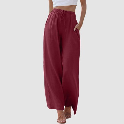 Women High Waisted Wide Leg Pants Drawstring Cotton Linen Trousers Solid Straight Leg Pants Casual Flowy Pants Pantalones