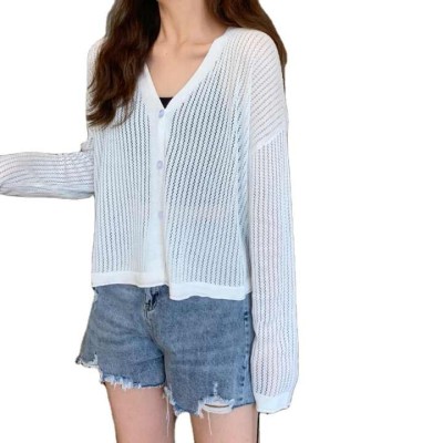 Long-sleeve Shirt Women's Summer Korean Version of Loose Thin Hollowed Out Solid Color Outside Thin Cardigan Top