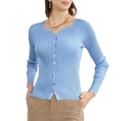 Casual Knitted Long Sleeved V-neck Button Ribbed Women's Cardigan