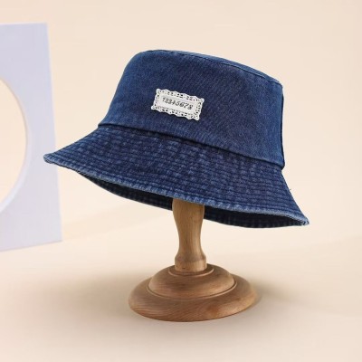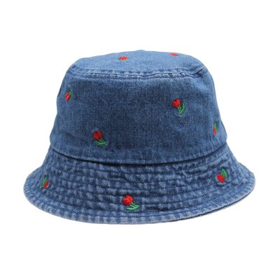 Casual Fisherman Style Bucket Hats for Unisex Wide Brim Cotton Denim Jean with Embroidered Bow