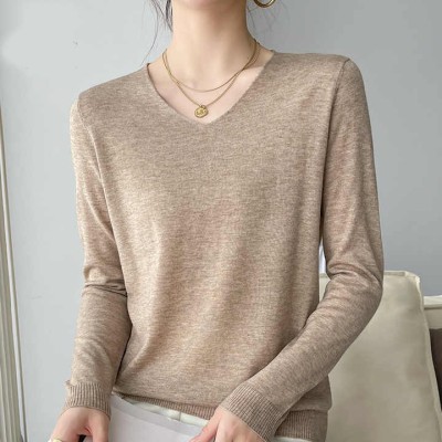 Autumn and Winter Thin Basic Simple and Versatile Solid Color V-neck Pullover Long-Sleeve Wool Sweater for Women