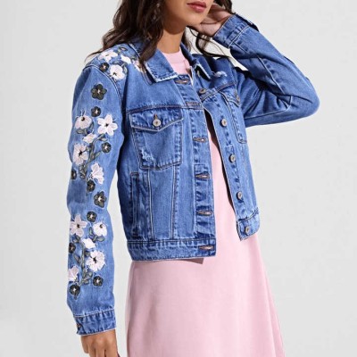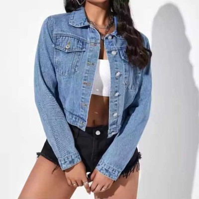 Women's Short Denim Jackets Blue Color New Stylish Plain Fashion Design Woven Stripe Decoration Women Denim Jacket