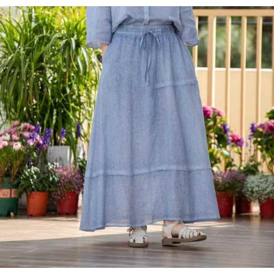 Drawstring High Waist Ladies Countryside Style Long Half Skirt