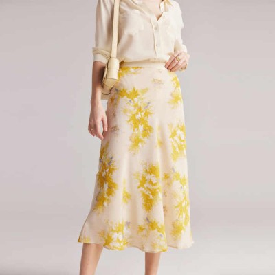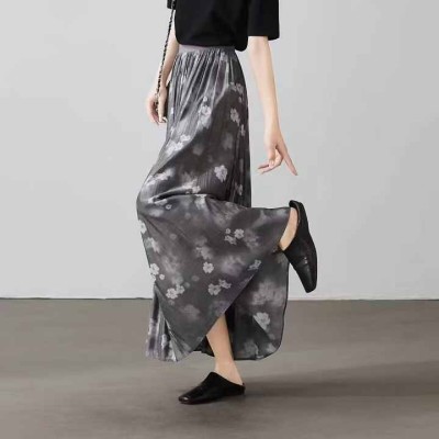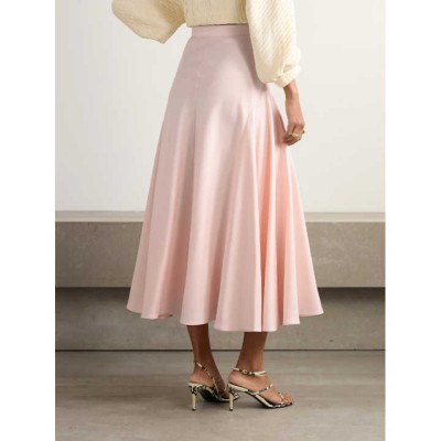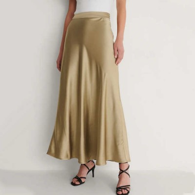 Women's Elegant Long Midi Skirt High Waist Office Soft Smooth Satin for Summer Women's Skirt