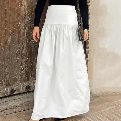 Summer Casual Stylish Zip-Up Elegant Casual High Waist Maxi Women's Skirts Solid Cotton White Long Skirt