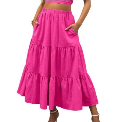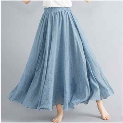 Women's Elegant Pleated Skirts Summer Cotton Linen Half-Length & Long Solid Skirt Casual