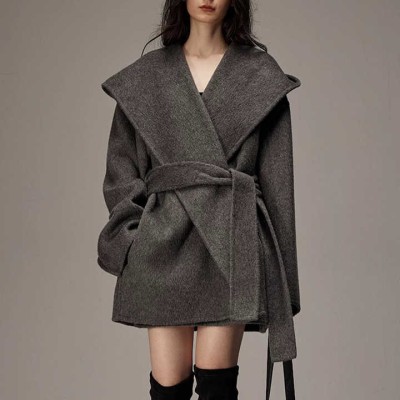 Winter Luxury Camel Hair Coat Double Faced Cropped Wool Coats Women with Hood
