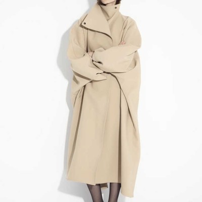 Stand Collar Long Woolen Coat Double Faced Winter Wool Coats for Women