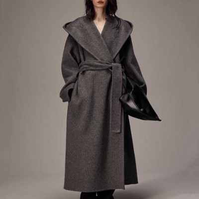 Double Faced Woolen Trench Coat Winter Luxury Goat Cashmere Wool Coats Women with Hood