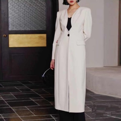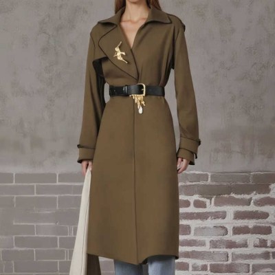 High Quality Fashion Loose Long Women's Autumn New Plain V-neck Women's Trench Coats