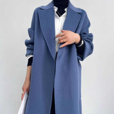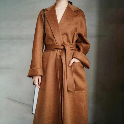 Fashionable Cashmere Wool Coat Slim Long Women's Elegant Belt Coat