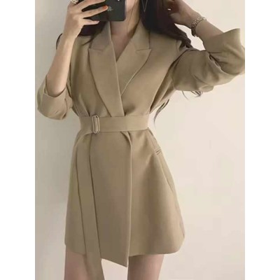 Women Solid Color Lapel Long Suit Jacket Comfortable Casual Robe