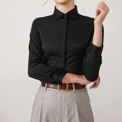Women's Office Lady Non-iron Silk Touch Long Sleeve Shirt Without Pocket Hidden Buttons Placket Slim-fit Versatile Female Shirts
