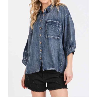 Women's Denim Shirt Mineral Washed Oversized Top Casual Streetwear Elegant Ladies Blouses Shirt