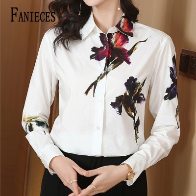 Spring Autumn Long Sleeve Printing Women's Blouse Fashion Single Breasted Casual Loose Women Shirts Elegant Lady's Tops