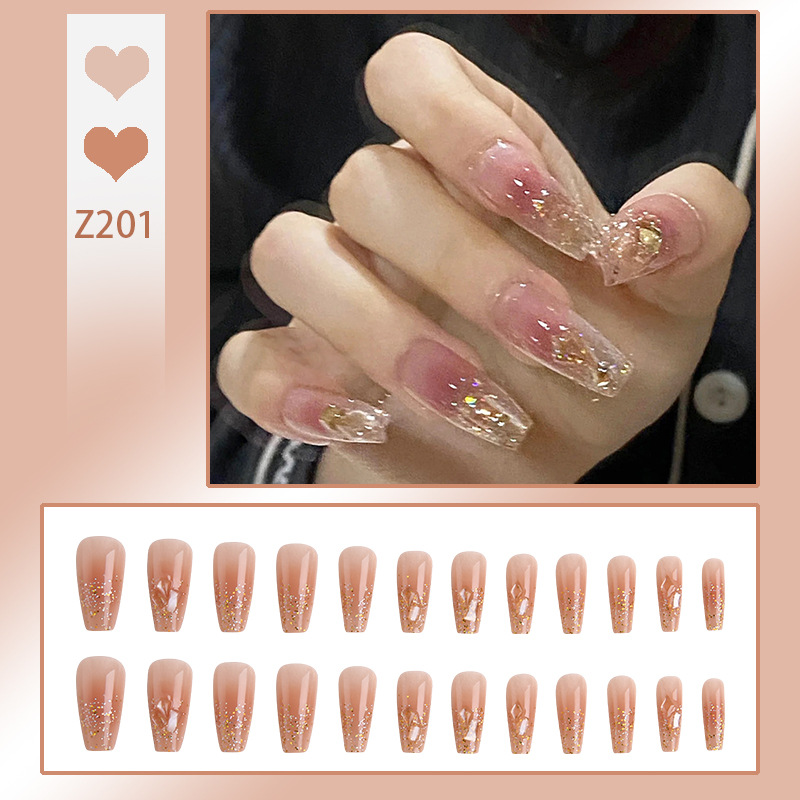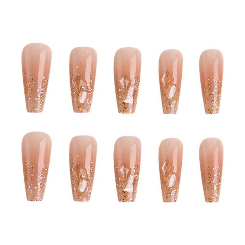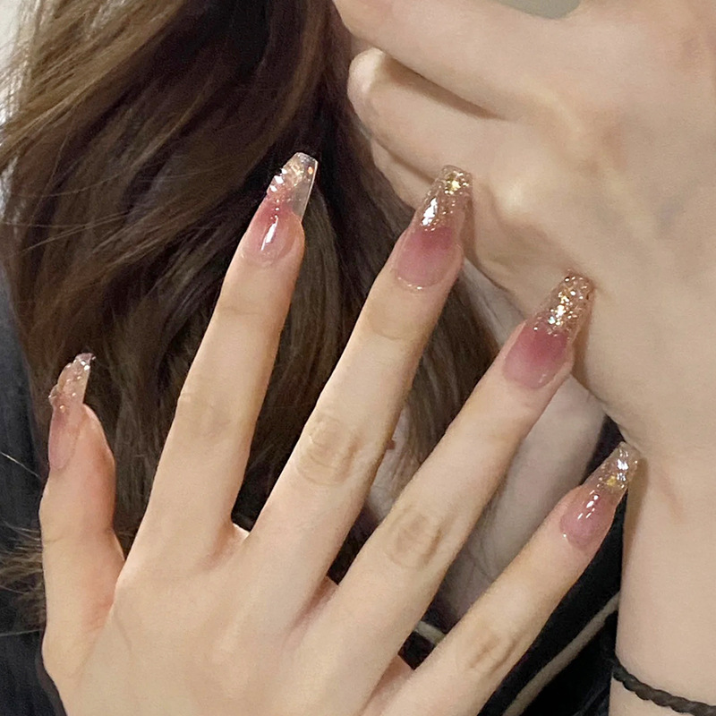 24PCS/1BOX Medium Long ice-permeable Square Diamond Glitter Pure Fake Nails
