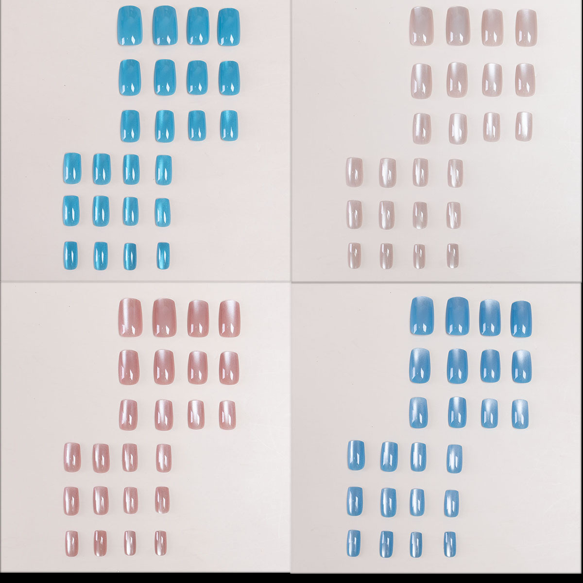 24pcs/30pcs short square ballet fake nails for women cat eyes glitter green blue purple pink shinny nail tips press on nail art