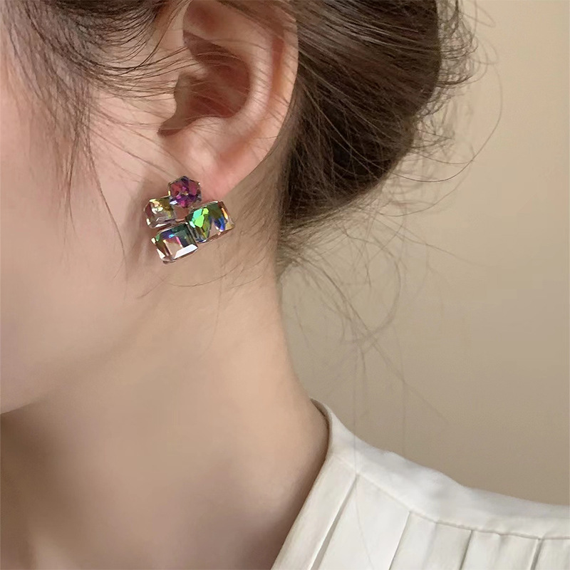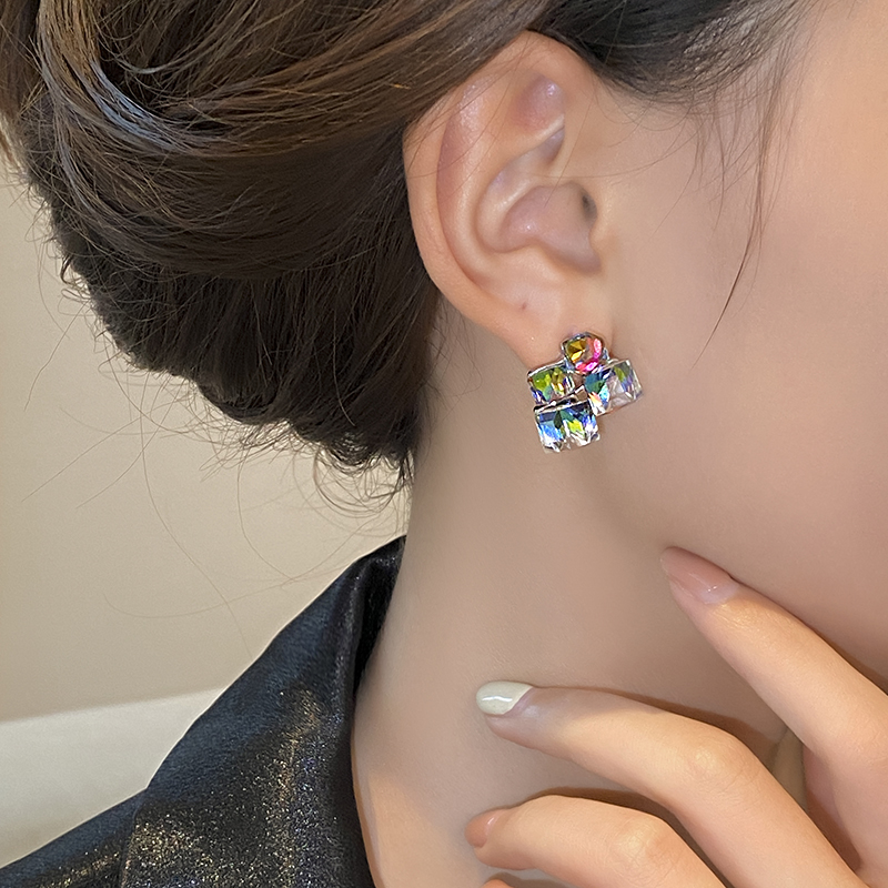 LATS Fantastic Colorful Crystal Geometric Square Earrings for Women Girls Different Angles and Colors Unusual Design Jewelry